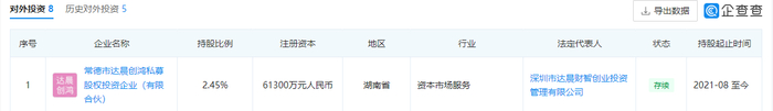 其中,常德市达晨创鸿私募股权投资企业(有限合伙)注册资本达3100万元,也是李湘名下注册资本最高的一家企业,主要从事非上市类股权投资活动或相关咨询服务,李湘的认缴金额为1500万元。公开资料显示,李湘是在今年8月份投资的这家公司,也就是婚变次月。