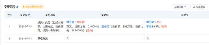 最近的一次注销发生在2021年11月3日,企业名称为“海南乐友欢互娱文化传媒有限公司”。该公司成立于2020年12月3日,距今不足一年。值得一提的是,今年7月,该公司发生工商变更,原本持有99.9%股权并担任执行董事的王岳伦退出股东,新增股东李湘并持股99.9%。