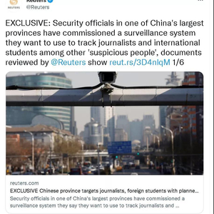在报道中,路透社也将重点放在这一系统将“追踪记者”上,并且将上述招标与河南当时出现的特大暴雨联系起来。路透社称,就在招标文件发布前几天,英国广播公司(BBC)、《洛杉矶时报》、法新社等外国媒体前往郑州采访的记者成为中国网友的“目标”。
