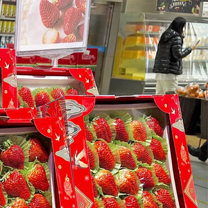 超市中,红颜草莓礼盒销售区。图源视觉中国