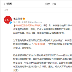 为了避免购买年票和预约门票的两批观众“狭路相逢”,故宫还将在12月1日20时,在故宫博物院售票网站、“故宫博物院观众服务”微信公众号开设专门年票购买窗口,疏导客流。