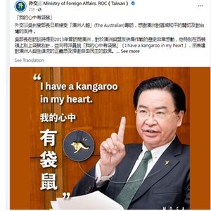 [环球网报道 记者 张晓雅]“我心里有一只袋鼠。”为拉拢与澳大利亚的关系,台湾省“外长”吴钊燮连这样的话都说出来了。