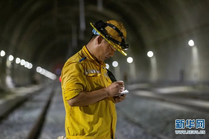 中老铁路勐松二号隧道内,王鹏正在记录精调作业相关数据(摄于10月27日)。赵普凡 摄10月27日见到王鹏时,正是轨道精调任务最重、时间最紧的时候。今年3月,王鹏主动请缨,参与到中老铁路的建设中来,负责元江到墨江段的轨道精调作业。几个月奋战下来,那头刚完工,就接到了新的任务——开拔勐腊县,30公里轨道,10天精调完成。