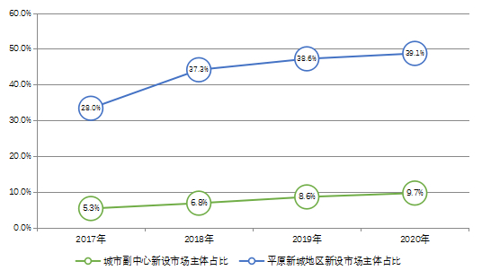 三是区域差异化定位更为明晰。新设市场主体逐步在城市副中心、平原新城聚集,各区产业投资与功能定位更趋匹配,空间布局进一步优化。城市副中心(通州区)新设市场主体在全市的占比从2017年的5.3%升至2020年的9.7%,平原新城地区新设市场主体在全市的占比从2017年的28%升至2020年的39.1%。