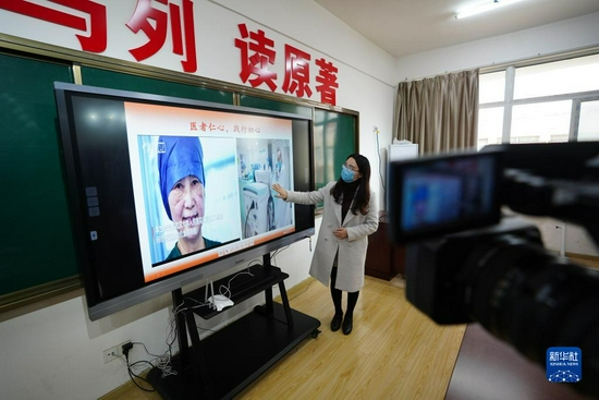 江西南昌豫章师范学院思政课教师通过互联网给学生们上课(2020年3月17日摄)。新华社记者 周密 摄
