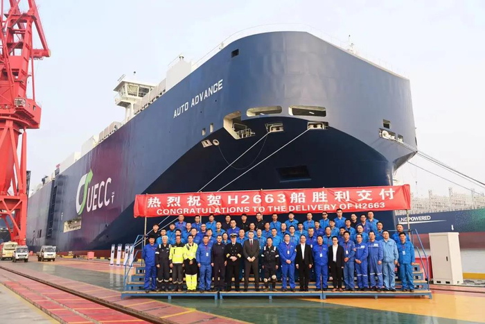 11月29日,中国船舶集团有限公司旗下上海船舶设计研究院设计、江南造船(集团)有限责任公司建造的世界首艘LNG双燃料+电池混合动力+EMS能源管控系统汽车滚装船(PCTC)“AUTO ADVANCE”号交付。该船是江南造船为挪威UECC公司建造的三艘3600车汽车滚装船中的首制船,也是江南造船时隔近三十年后交付的首艘汽车滚装船,交付后将投入到北欧—地中海区域航线营运。