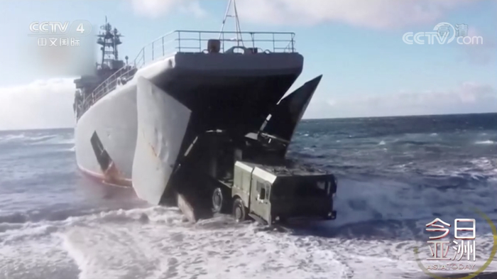 一台台搭载着导弹发射装置的车辆从大型登陆舰内驶出,前往部署阵地——当地时间12月2日,俄罗斯东部军区宣布,在位于千岛群岛中的马图阿岛上首次完成了“棱堡”反舰导弹系统的部署。