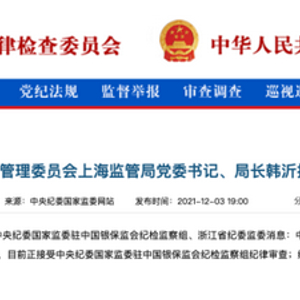 在韩沂落马之前,去年9月14日,他的副手、上海银保监局副局长周文杰涉嫌严重违纪违法被查。据报道,周文杰在上海银保监局分管办公室(党委办公室)、银行机构检查处、案件稽查处、消费者权益保护处、国有控股大型商业银行监管处、全国性股份制商业银行监管处、专营机构监管处工作。