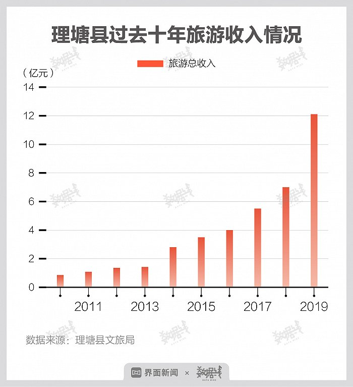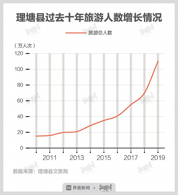 事实上,理塘县积极发展旅游经济,已有近十年。理塘县旅游局副局长毕雪松去年接受界面新闻采访时介绍:“2013年后,(甘孜)从州级层面提出全域旅游概念,我们也按照要求完善国道318和227沿线的旅游基础设施。过去几年对理塘县旅游基础设施的各类投入,累计大约有5到6亿元。”