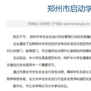 近日,郑州市出台《郑州市学生安全出行综合管理工作方案》。图/河南省人民政府网