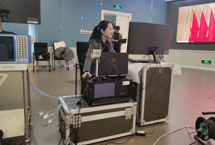 宋哲与团队成员测试仪器