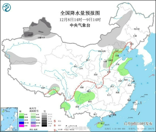 不过值得注意的是,不论这次北京城区能否见雪,这场雨雪天气过程都将对明早的早高峰出行造成一定影响,预计明天上班时间,北京大部地区以小雨或雨夹雪为主,气温在1~2℃左右,部分地区可能结冰,公众出行需注意道路湿滑、能见度较低等带来的不利影响,同时也请做好防寒保暖工作。