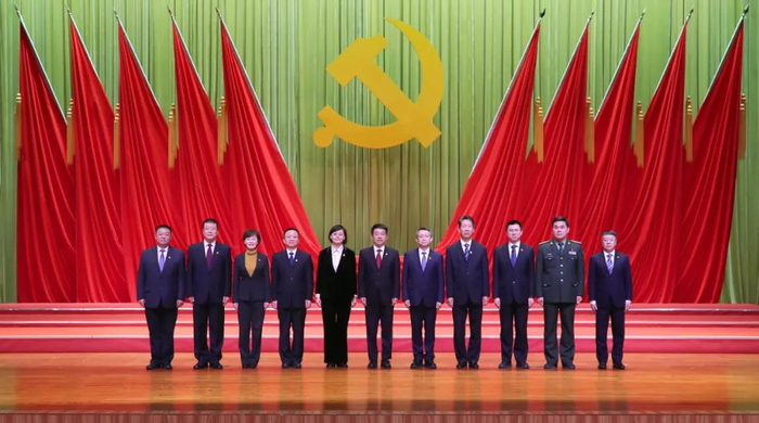 新当选的中国共产党北京市顺义区第六届委员会常务委员会委员集体合影。