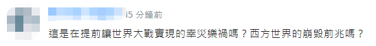 还有人问:“这是在提前让世界大战实现的幸灾乐祸吗?西方世界的崩毁前兆吗??”