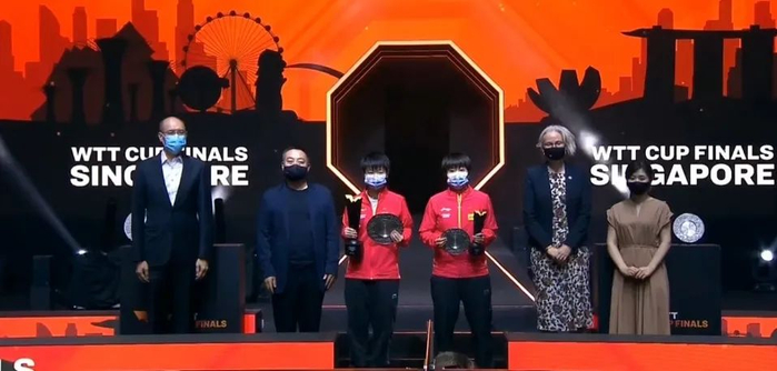 就在刚刚结束的新加坡2021WTT世界杯决赛,福原爱惊喜现身以嘉宾的身份亮相颁奖典礼,并为国乒选手颁奖。