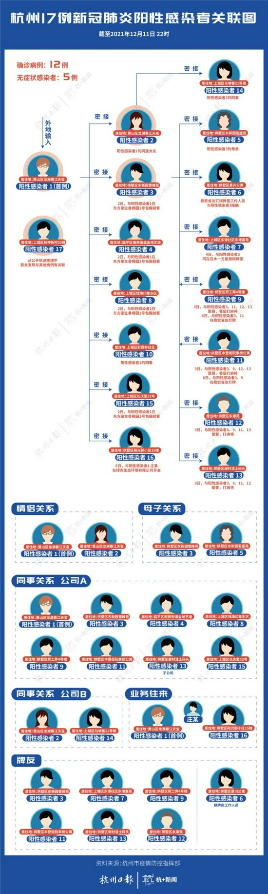 原标题:杭州17例阳性感染者关联图来了!所涉场所公布