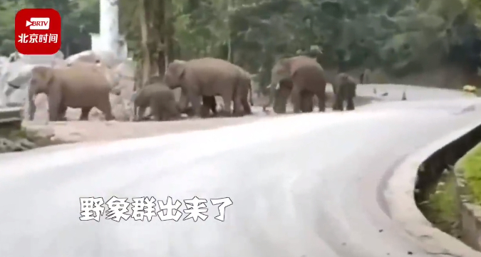 ·又来了!云南20余头野象组团过马路,车辆等半小时。