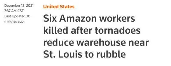美国一亚马逊仓库遭龙卷风袭击6人死亡,亚马逊创始人贝索斯发声!