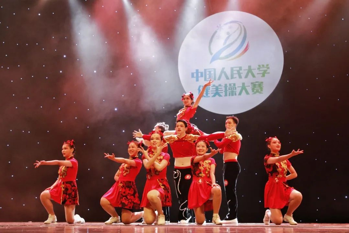 来自21个学院的16支代表队参加了本次健美操大赛。冬奥在即,各支队伍以火一般燃烧的激情和水一样灵动的舞姿,展现了青年人的无限活力。