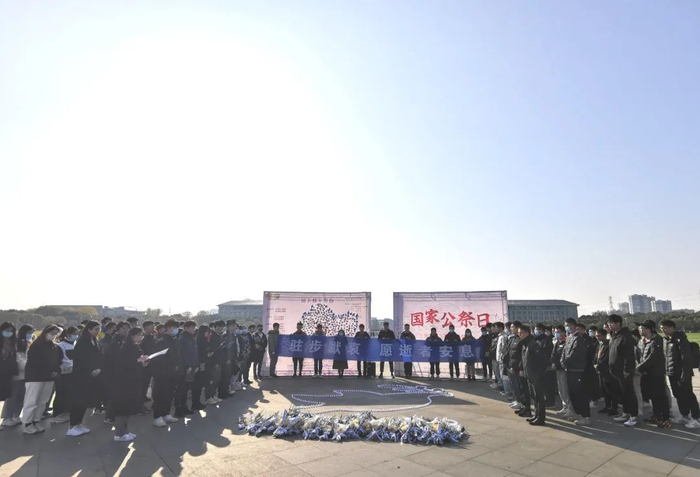 12月13日上午,东南大学机械工程学院研究生会、东南大学国防军事实践团在九龙湖校区举办国家公祭日主题活动。在防空警报拉响时,为遇难同胞集体默哀。并通过诵读祭文祭奠遇难同胞,祈愿和平。