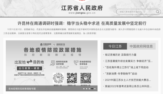 政知君注意到,江苏省政府官网、南京市政府官网等都变成了黑白色。