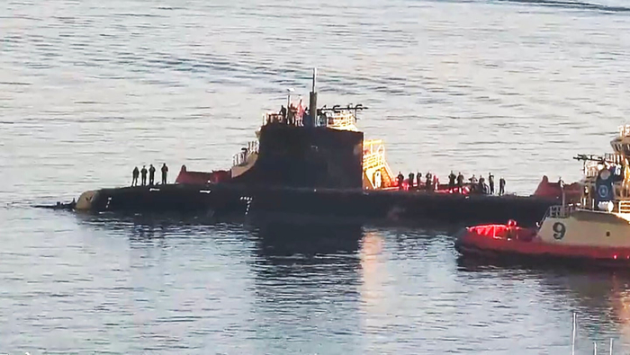 最新曝光的画面也披露了这艘潜艇的受损程度,可以看到艇首的整个声呐罩都不见了。