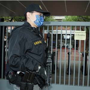 台北美国学校收到恐怖威胁,士林分局刑警荷枪实弹站在校门警戒