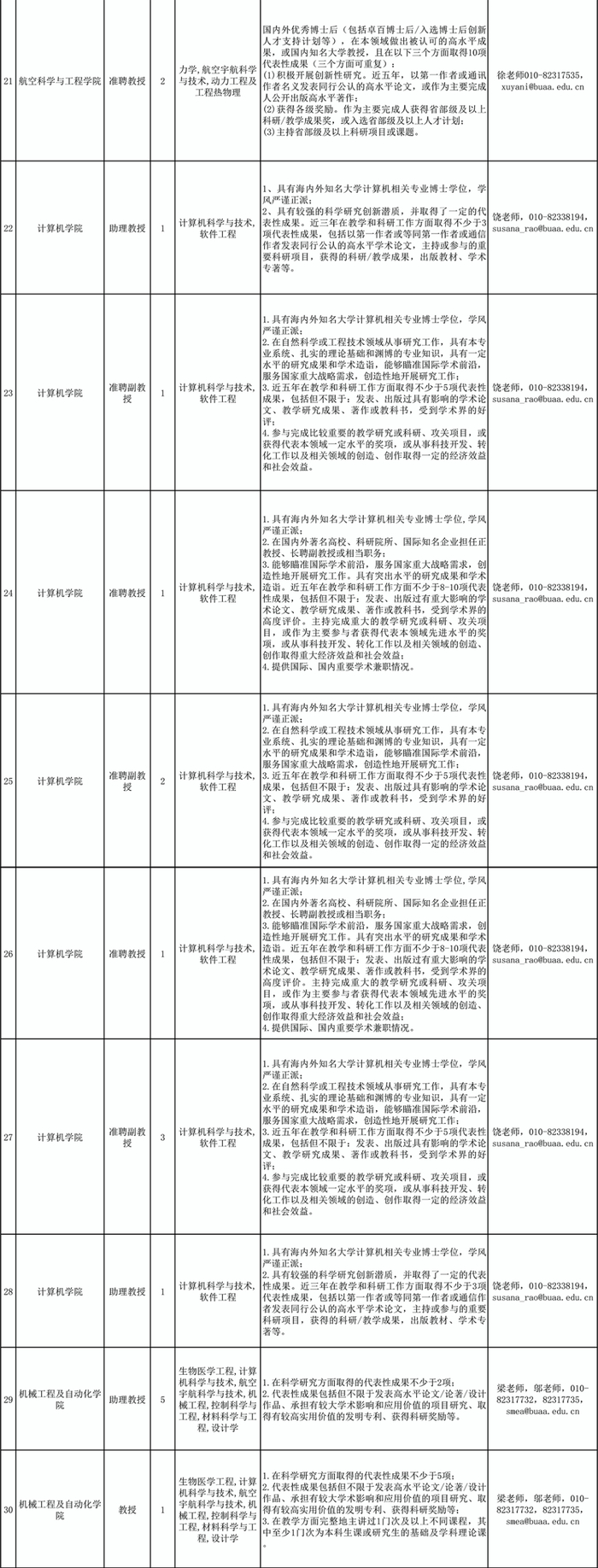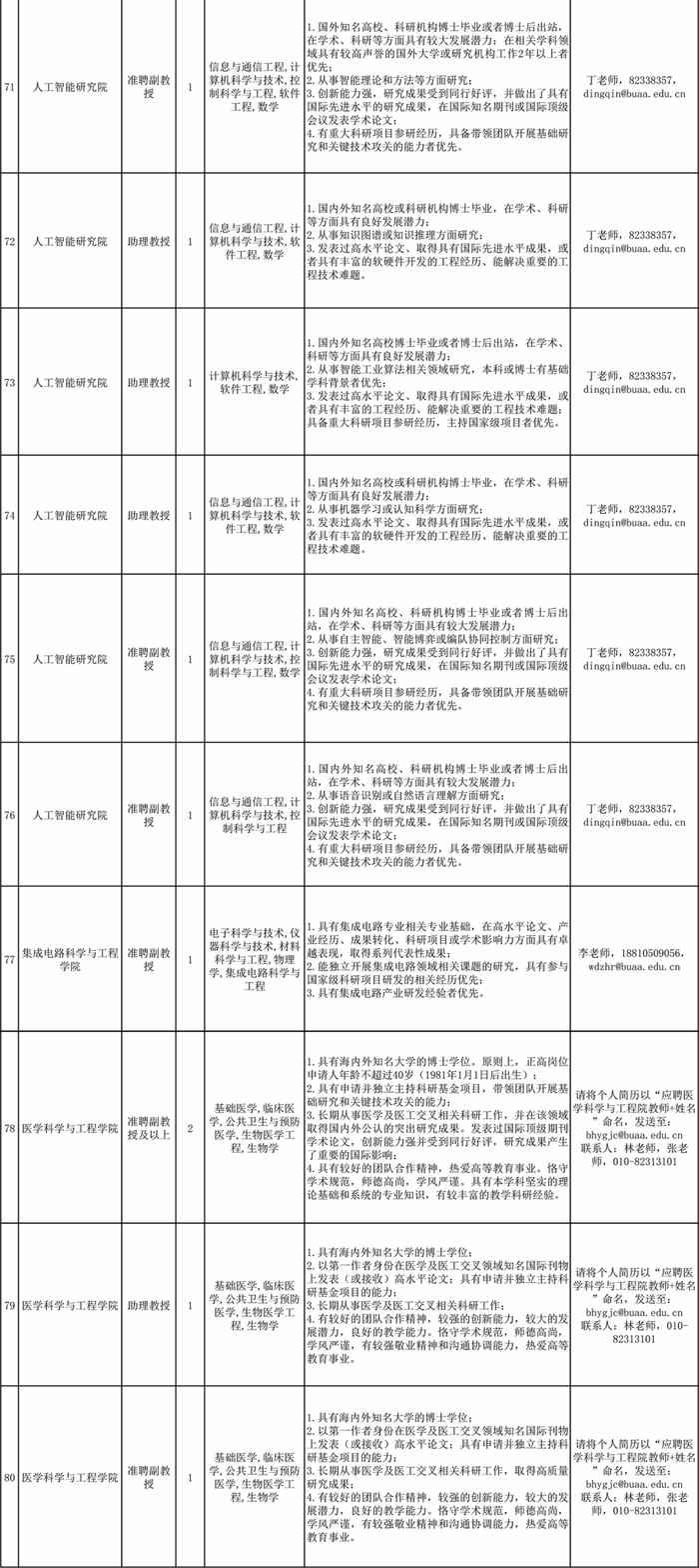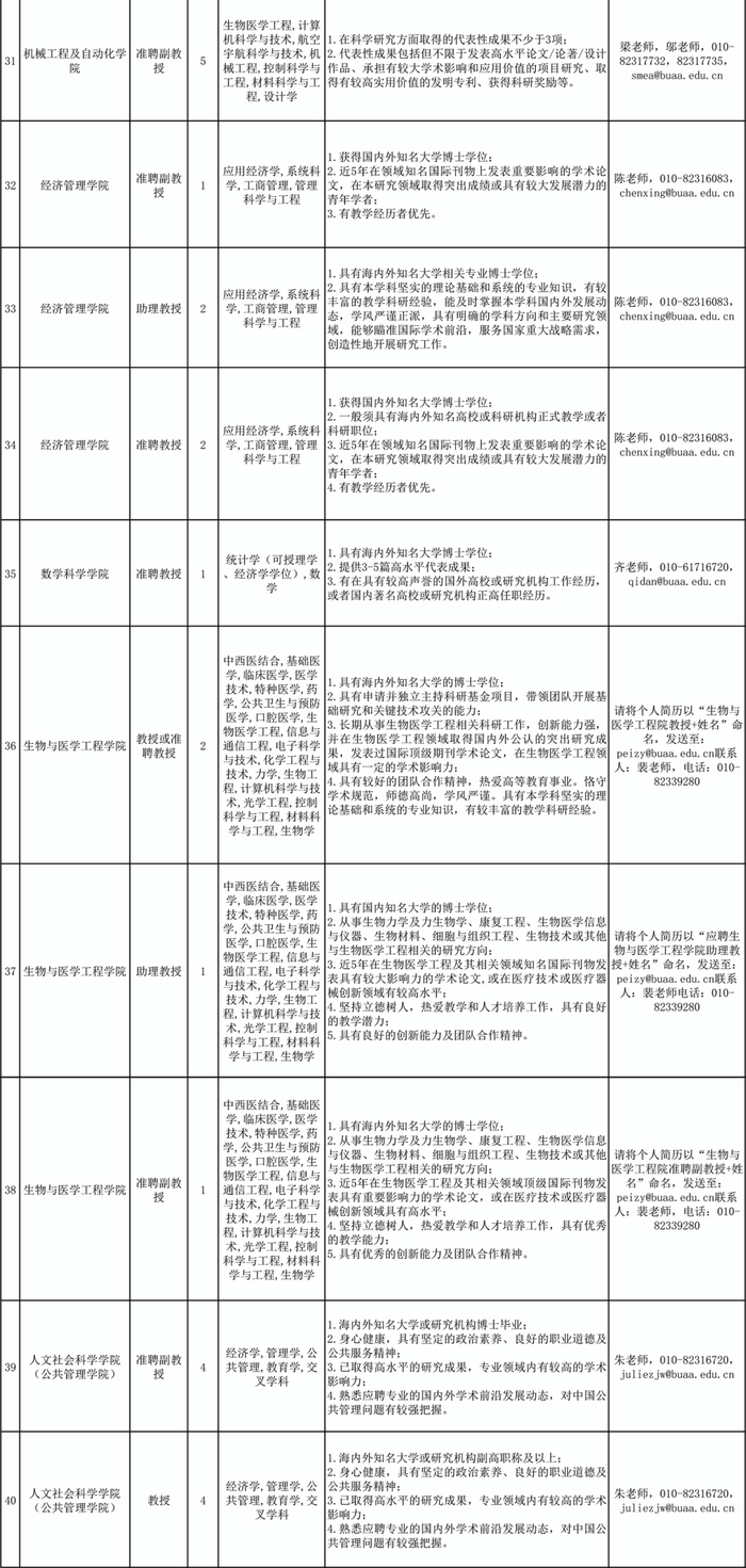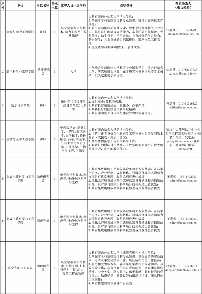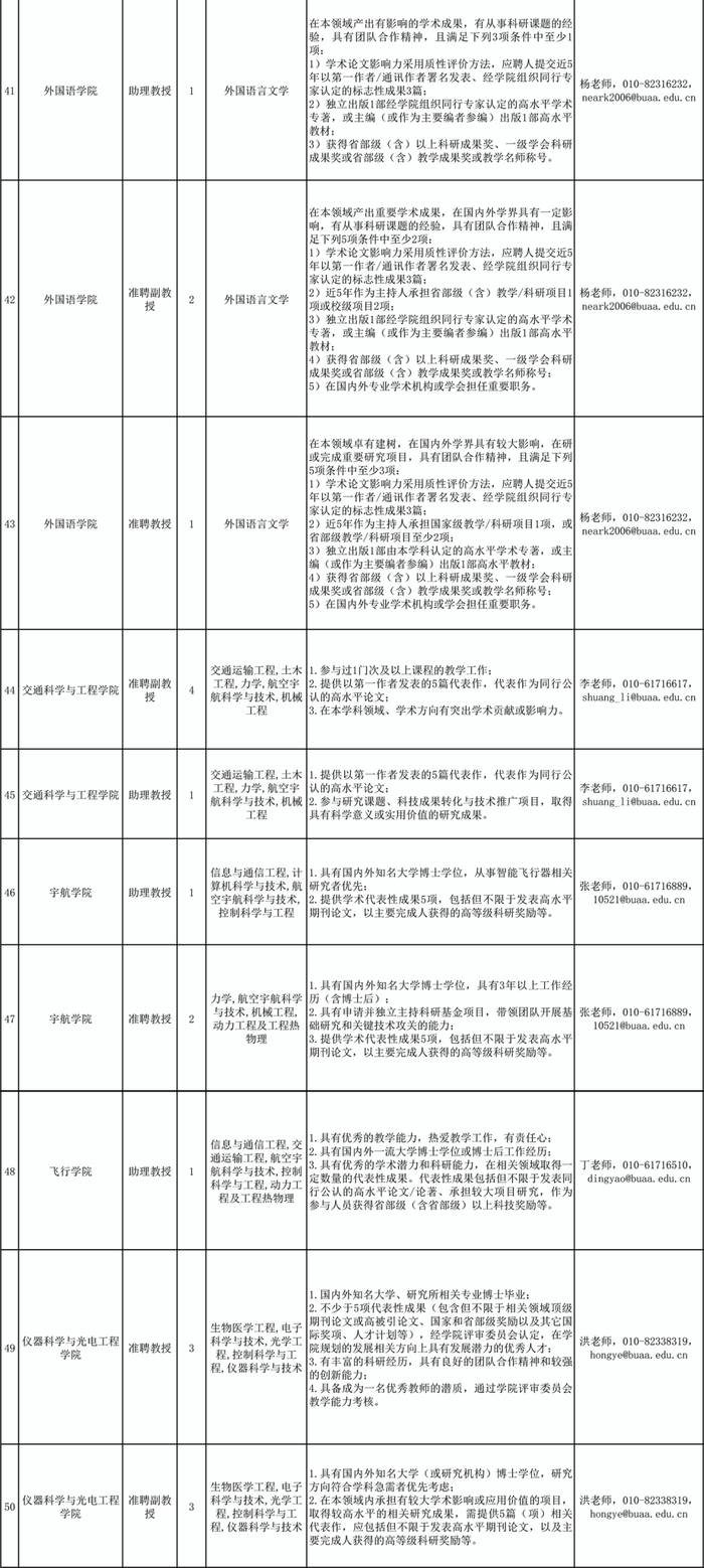 根据《事业单位公开招聘人员暂行规定》(人事部令〔2005〕6号)、《关于进一步规范事业单位公开招聘工作的通知》(人社部发〔2010〕92号)、《工业和信息化部所属事业单位公开招聘人员实施办法》(工信部〔2011〕153号)、《北京航空航天大学关于加强教师分系列招聘工作的指导意见》(北航校字〔2021〕4号)、《北京航空航天大学教师队伍分系列招聘管理办法》(北航校字﹝2021﹞5号)等文件规定和精神,经学院申报、学校审定,现将北京航空航天大学2022年度部分教师岗位招聘计划公布如下。