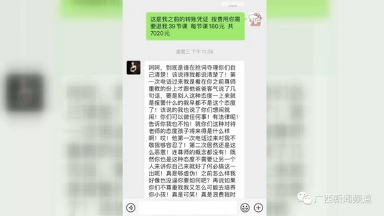 叶女士说,去年10月份,她花16600元购买了92节课送儿子来学钢琴时,就听郭老师说她上课有自己的“风格”,但没想到是这样一种“风格”。