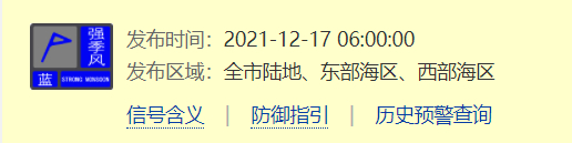深圳发布全市强季风蓝色预警