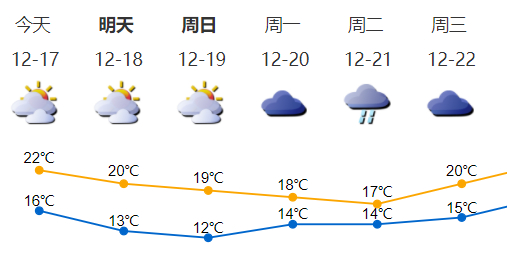 19日最低气温仅12℃
