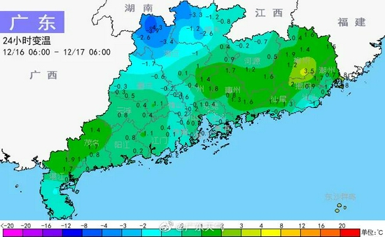 据@广东天气,今早05时,冷空气前锋已抵达广东省中部,北部和中部气温同比昨天06时略降。另外,今天白天气温还会逐渐下降,外套备好了!