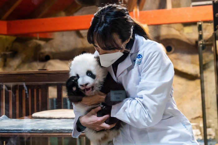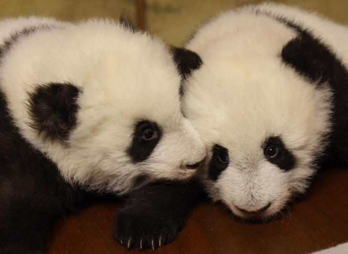 西班牙动物园大熊猫双胞胎满百天 获名“久久”和“友友”