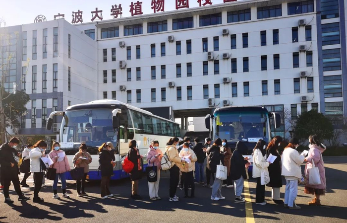 在市交警部门和疾控中心等有关部门的支持下,设置4个接驳点、安排7辆接驳车在考试当天接送管控区外的监考和考务老师,并根据考点分布,安排7辆车接送植物园校区、梅山校区以及校外考点的考生。