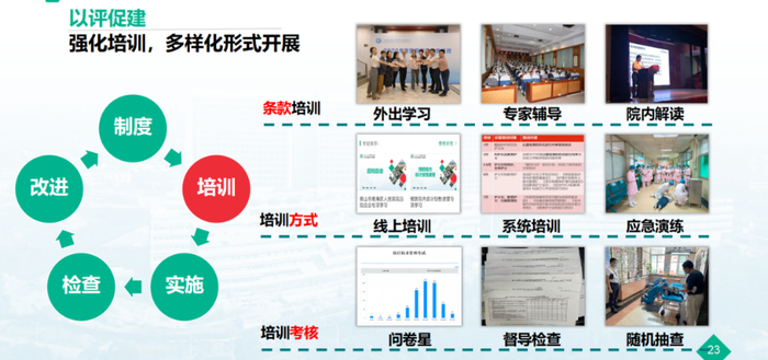 历时一年筹备,医院对照新评审标准,共组织开展自评5次;培训、演练120多场;梳理完善规章制度803个,分党群行政、医疗、护理、药学、院感5册共180万字,并对医疗全流程进行梳理编制;邀请院外专家开展现场培训和强化培训共3轮,内部辅导42次,累计完成问题整改400余条,形成PDCA案例88个。在年初出炉的广东省三级公立医院绩效考核中,医院更是取得700.31分的高分,在全省区级医院中排名第三,为顺利通过复审打下坚实基础。