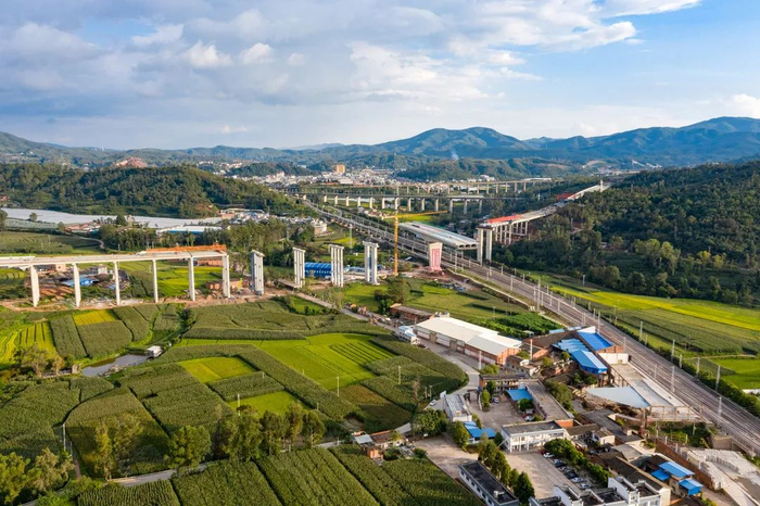 2021年9月10日上午,楚大高速公路扩容工程广通枢纽连接线上跨成昆铁路立交桥,采用转体法施工,将重达2.36万吨的悬浇T型刚构桥完成72°转体,顺利跨越成昆铁路。该桥是目前国内单体最重的跨铁路转体桥,转体的顺利完成,刷新了全国悬浇法施工跨铁路转体桥的新纪录,这也标志着我国地质复杂地区桥梁建设取得又一次新突破。