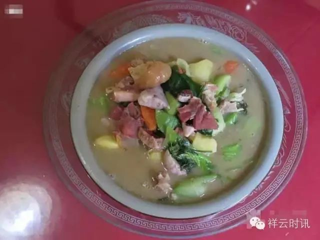 祥云的火腿杂菜特点在于采用的是普淜火腿,咸淡适中,再加入白菜等食材,味道鲜美,营养健康。
