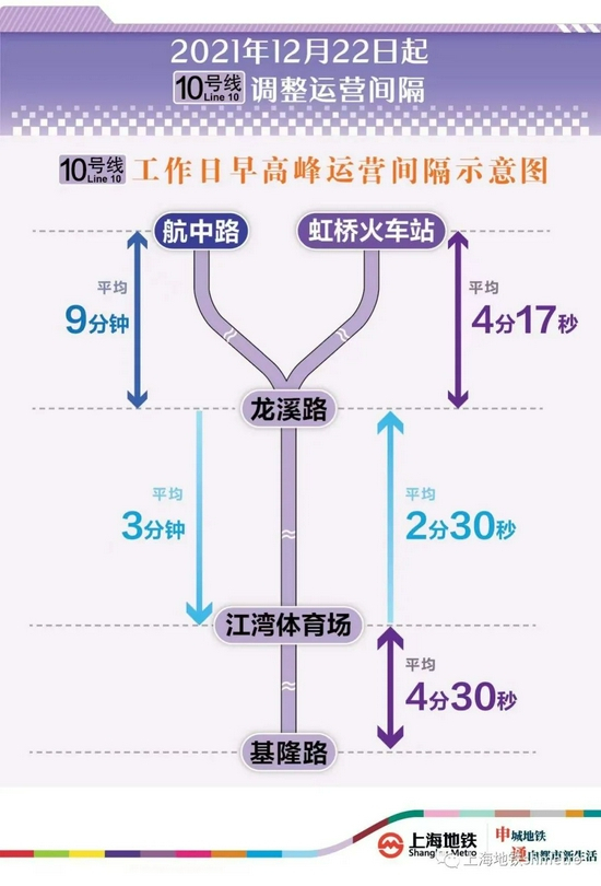 12月22日起,10号线工作日早晚高峰增能,最短间隔2分30秒。