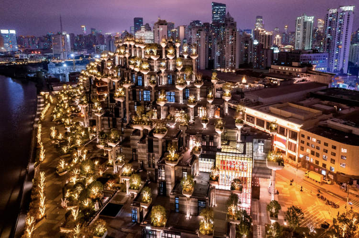 当中国的黄山与古巴比伦空中花园合二为一,会产生怎样奇妙的化学反应?如果你不能想象这一奇妙的场景,那就不妨到“天安千树”来亲眼见证这苏州河畔的奇迹。