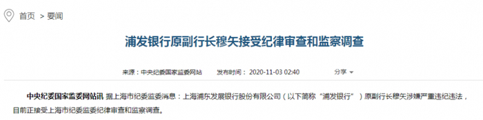 浦发银行原副行长穆矢涉嫌利用职务便利违规操作并收受钱款问题