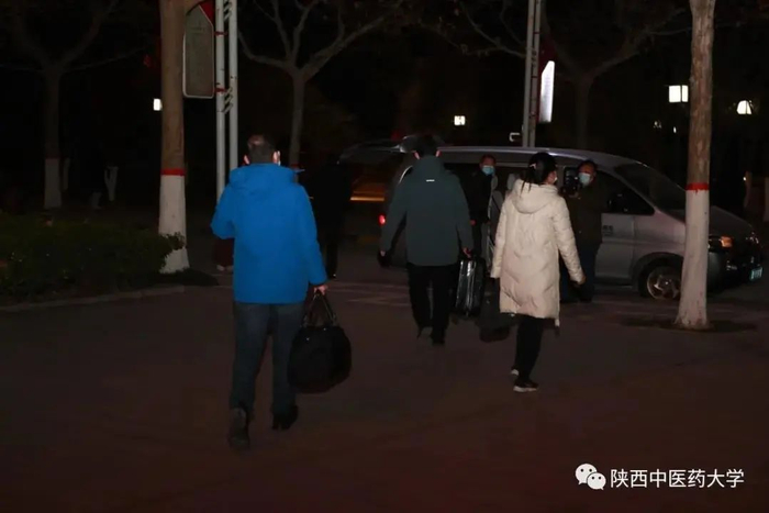 疫情就是命令,防控就是责任。面对当前我省复杂严峻的疫情防控形势,陕西中医药大学按照上级疫情防控工作部署,于2021年12月18日紧急抽调陕西中医药大学省级流调队。大家踊跃报名,经过遴选,公共卫生学院孙娜、张荣强、任晓梅、徐守竹、马诚5名预防医学专业教师前往长安大学雁塔校区参加疫情防控工作,他们连夜集合,整装出发。