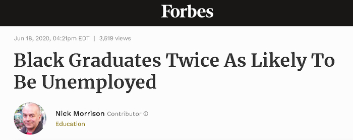 因为,面临还贷压力的不仅有女学生,还有不少男学生,其中来自非裔美国人家庭的男学生面临的困境就颇为突出。公开资料显示,美国黑人群体不仅更容易背上沉重的学生贷款负担,而且还得面对美国社会中系统性的种族歧视问题,更容易失业。而当下疫情的冲击无异于“雪上加霜”。
