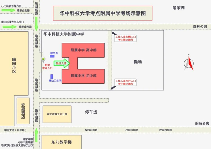2.本考点仅允许校外考生凭准考证、身份证验证入校。送考人员及车辆不得进校。请考生合理规划行程,综合考虑天气、交通拥堵等情况,可考虑通过轨道交通出行。赴考途中,请做好个人防护措施,佩戴口罩等。至少提前60分钟到达考场。