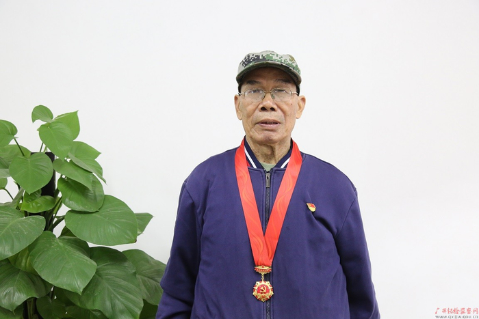今年是建党百年,黄启华获得“光荣在党50年”纪念章。虽然已是72岁高龄,但他佩戴这枚纪念章的时候依然精神抖擞,身姿挺拔。(平果市纪委监委)