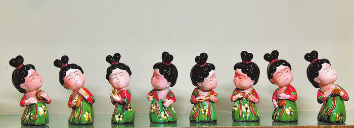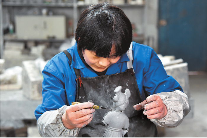 12月24日,洛阳九朝文物复制品有限公司唐三彩艺术品生产车间的工艺美术师正在创作卡通版《唐宫小妹》,文旅文创产品越来越受追捧。(郑占波 摄)