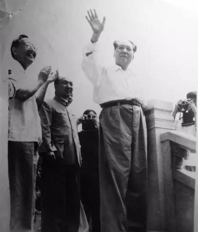 毛泽东在天大视察的消息不胫而走,一万多名师生员工自发地齐聚第九教学楼门前广场,高喊“毛主席万岁”“中国共产党万岁”。随后,毛泽东来到第九教学楼门前平台上接见了广大师生群众,并挥手致意。