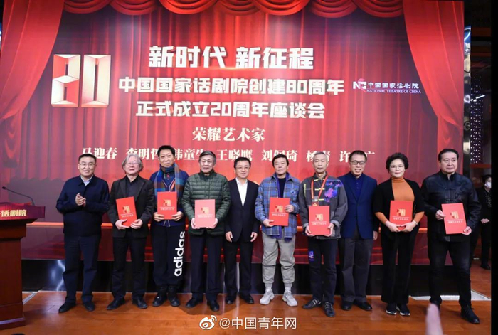 12月25日,中国国家话剧院在京召开座谈会。张奇虹、游本昌、雷恪生、薛殿杰、唐国强、李雪健六位艺术家获得中国国家话剧院“终身荣耀艺术家”称号;马迎春、陈强、查明哲、韩童生、王晓鹰、杨青、刘威、刘佩琦、倪大红、许文广十位艺术家获得中国国家话剧院“荣耀艺术家”称号。