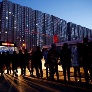 清晨,燕郊排队乘车进京的人。图/中国新闻图片网