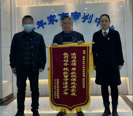 “法网柔情,帮扶低保残疾家庭;教罚结合,挽救留守迷途少年”,锦旗上简短的语言不仅承载了当事人满满的信任与感激的心情,也饱含着人民群众对公正司法的热切回应。