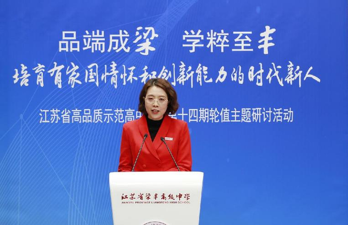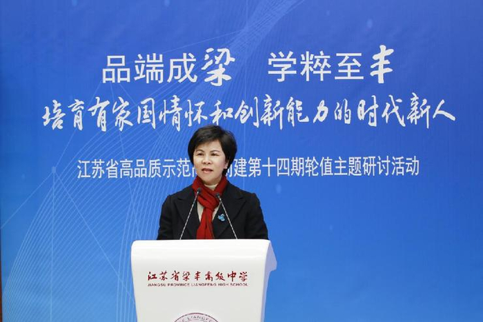江苏省梁丰高级中学党委书记、校长谈雅琴表示,梁丰高中作为一所县域高中,积极探索县中发展方向,不断推动学校高质量内涵发展,尤感意义重大与使命在肩。